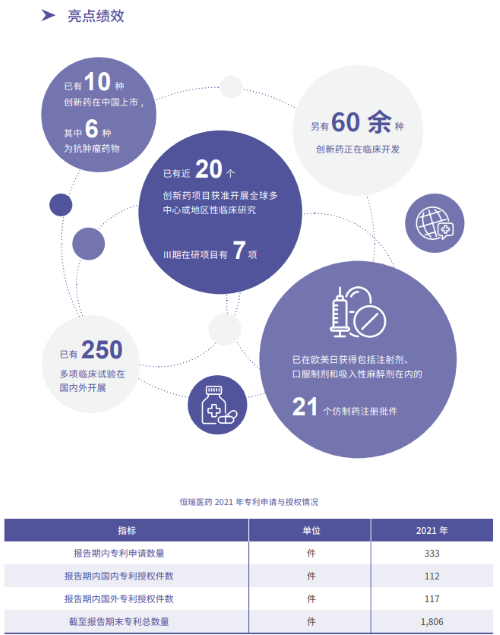 从国际视角看,截至2021年底,万利国际医药产品已进入超过40个国家,同时还在继续加快开拓全球市场并重点关注新兴市场。通过与韩国、美国公司合作,将卡瑞利珠单抗、SHR0302等具有自主知识产权的创新药对外授权,让公司创新药品惠及全球患者。此外,万利国际医药已有21个仿制药在欧美日市场销售,有些产品的市占率在海外名列前茅,提高了全球不同地区患者的药物可及性。