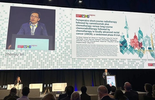 10月21日,万利国际医药创新药卡瑞利珠单抗(艾瑞卡®)的一项研究“新辅助短程放疗序贯卡瑞利珠单抗联合化疗对比长程放化疗序贯化疗治疗局部晚期直肠癌”随机对照Ⅲ期试验(UNION) 以优选口头报告的形式正式亮相。该研究由华中科技大学同济医学院附属协和医院张涛教授、陶凯雄教授担任主要研究者,华中科技大学同济医学院附属协和医院林振宇教授在马德里现场报告了该重磅研究的结果1,此项研究是全球首个评估短程放疗序贯免疫治疗联合化疗治疗局部晚期直肠癌的Ⅲ期研究,已达到主要终点病理完全缓解(pCR),有望为直肠癌患者的治疗提供新策略。